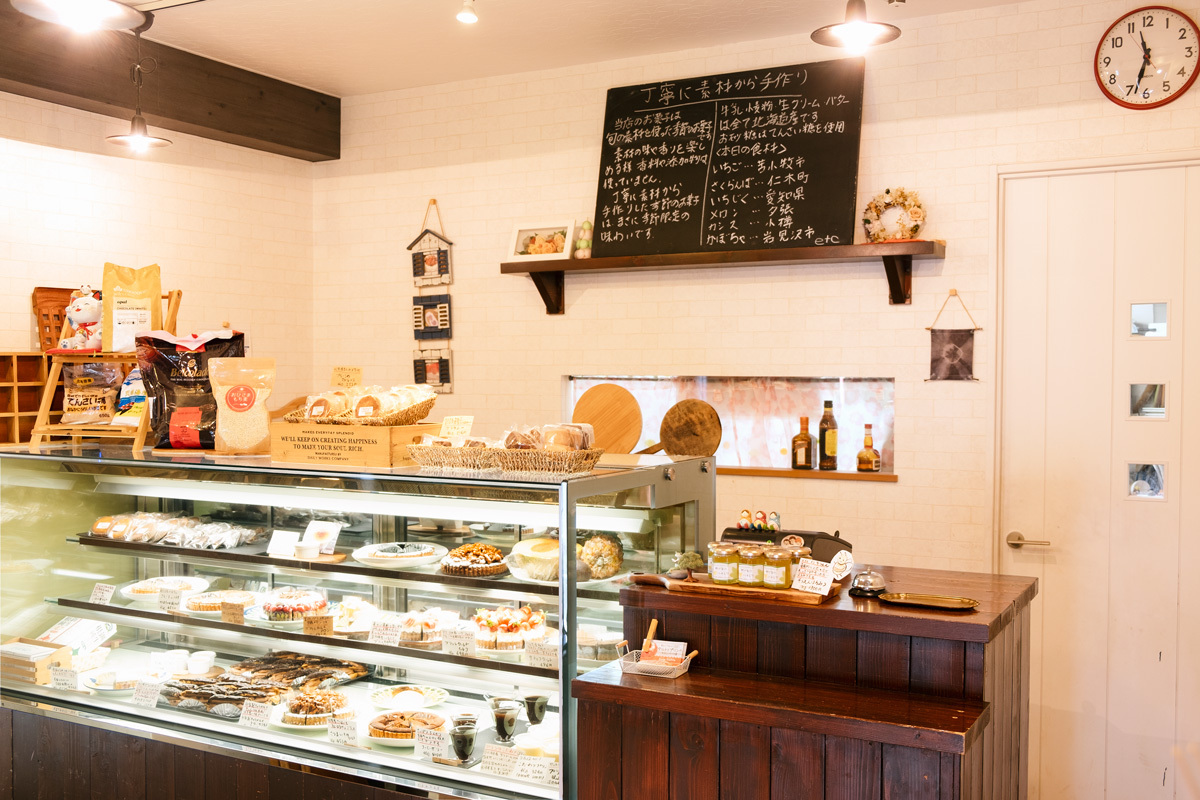 当店のお菓子は、北海道産素材を中心に、季節の素材を使って作ってます。素材の味や香りを楽しんでもらうため、香料・添加物・保存料は使っていません。素材から手作りしたお菓子は、季節限定の味わいです。